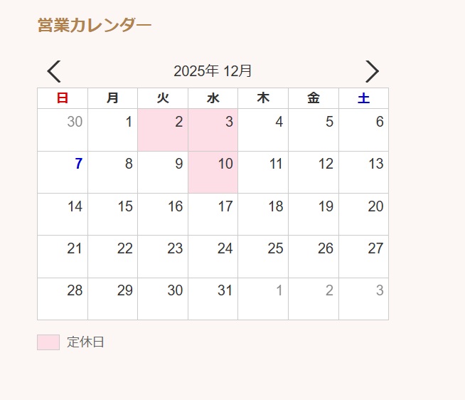 12月は10日の定休日を最後に、11日からは年内は休まず営業します。